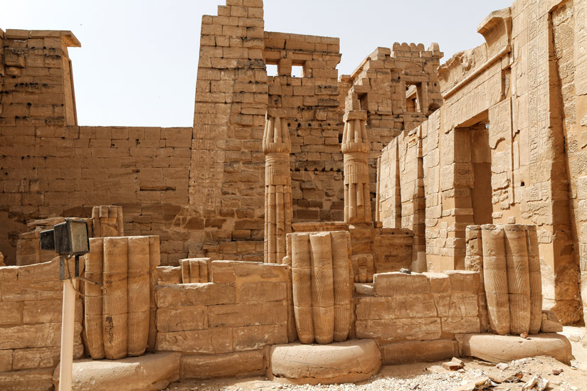 Sur le linteau, double scène avec Ptolémée X. Montants : texte de Ptolémée X.