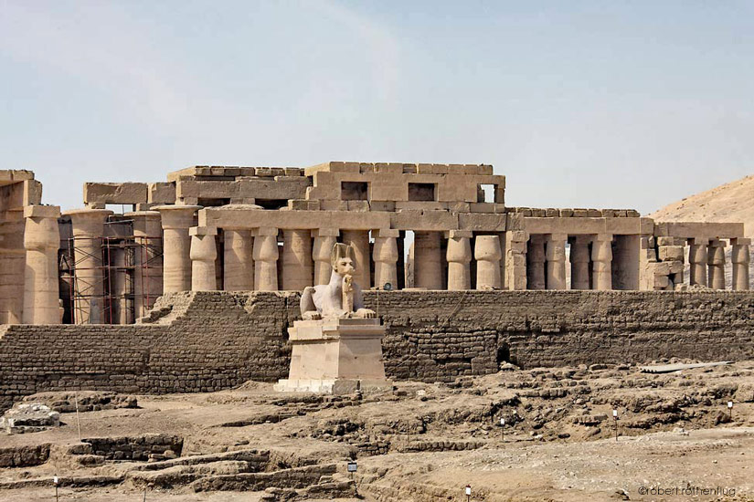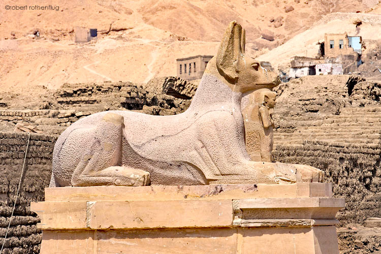 Une allée processionnelle bordait certains côtés du temple. Elle était flanquées statues d'Anubis posées sur de grands socles. Les vestiges retrouvés ont permis de connaître leurs emplacements, leurs dimensions et d'en construire un modèle placé in situ.
