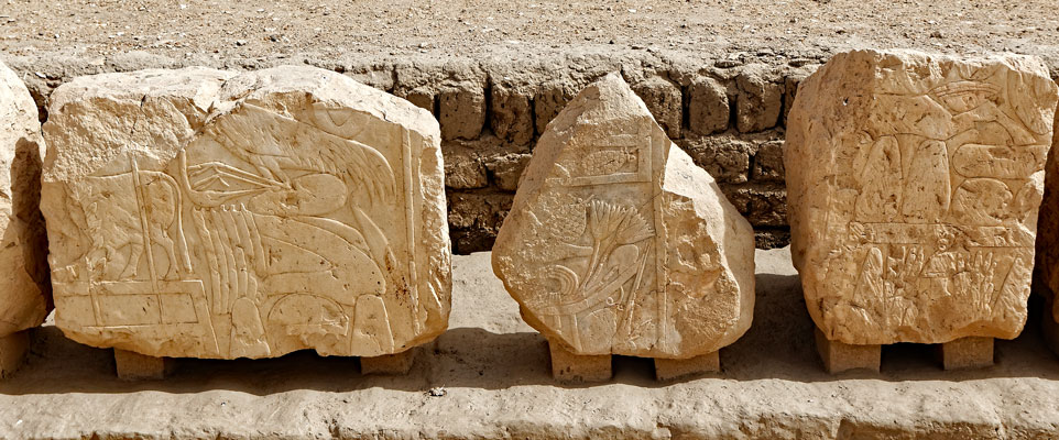 Ci-dessus une partie des blocs comportant des fragments de la titulature des Ramsès II.