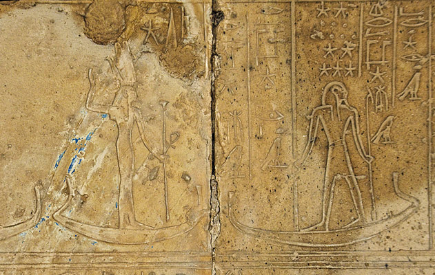 Au-dessus de la tête d'Orion, les étoiles semblent dessiner une constellation. Mais les constellations de l' Égypte antique étaient très différentes de celles dessinées aujourd'hui. Pour avoir une comparaison entre la vue ancienne et la vue récente d'Orion, vous pouvez cliquer ici.
