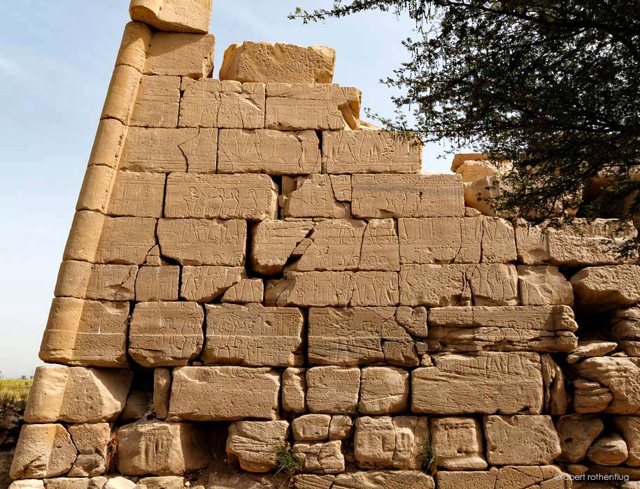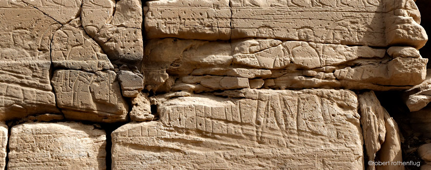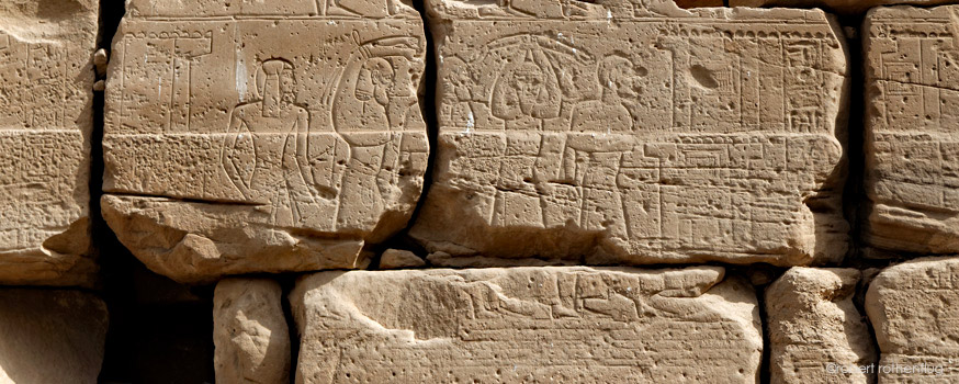 A la fin de sa 8ème année de règne, Ramsès II se lança dans une reconquête de la Syrie. Sur cette partie du mur, 14 des villes capturées sont ,en principe, encore visibles. La prise de Dapour, la plus important de ces citadelles, est relatée en détail dans la salle hypostyle. Cette partie du pylône se trouvait à l' extérieur du temple, séparé du reste par un mur de la 1ère cour maintenant disparu, dont on voit le départ à droite. Les