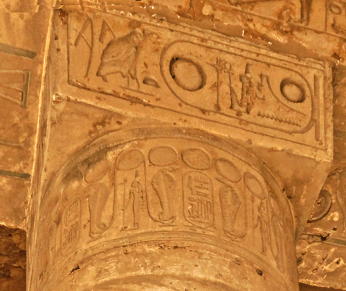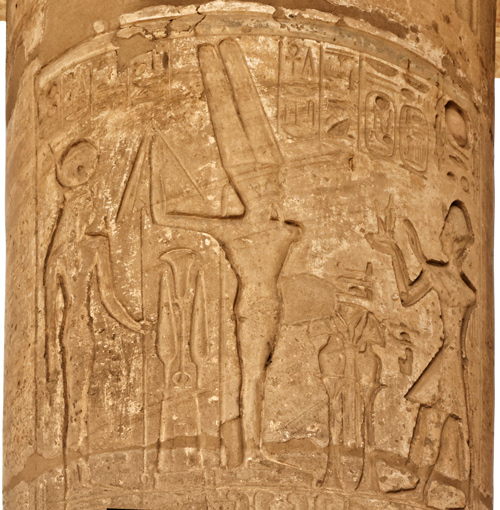 Le roi offre l'image de la Maât à Amon-Kamoutef suivi d'Isis.