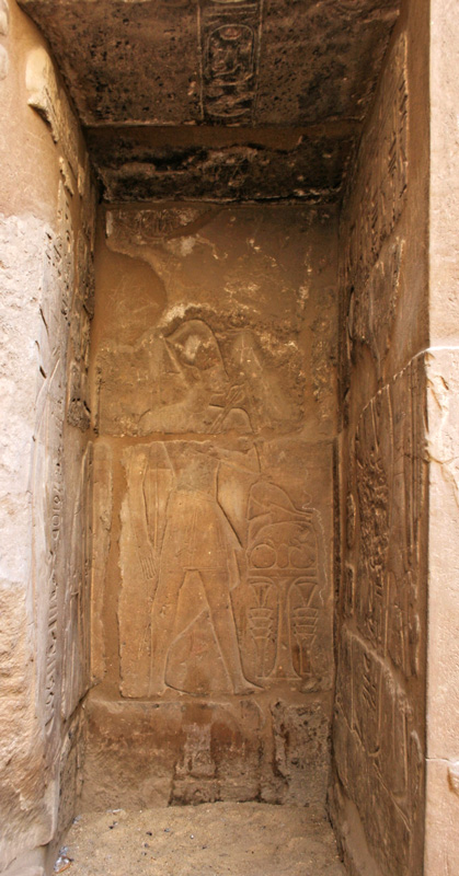 La paroi du fond comporte une scène montrant le roi avec une table d'offrandes.