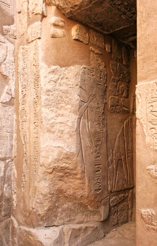 | Sur le montant gauche de la niche, la titulature de Ramsès II. Sur le côté intérieur gauche, Thot et le roi. |