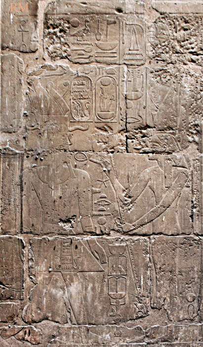 Double scène du haut : le roi reçoit la vie de Mout debout.