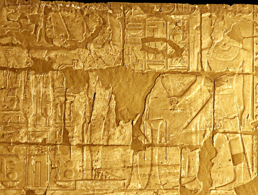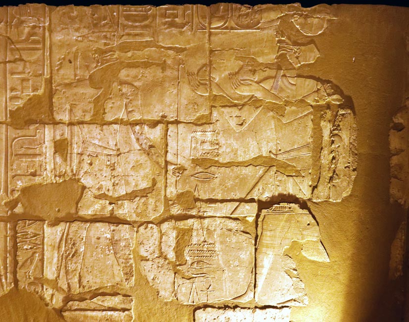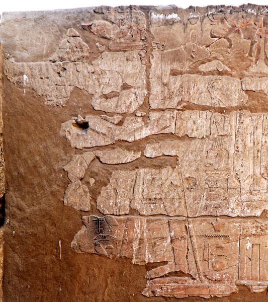 La paroi Ouest du reposoir Ouest de la barque de Khonsou Seul le registre du bas subsiste