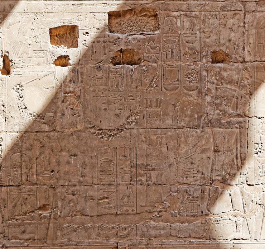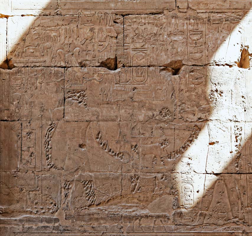 Première scène en partant du Nord : le roi amène 4 veaux devant Amon, scène très représentée dans les temples.