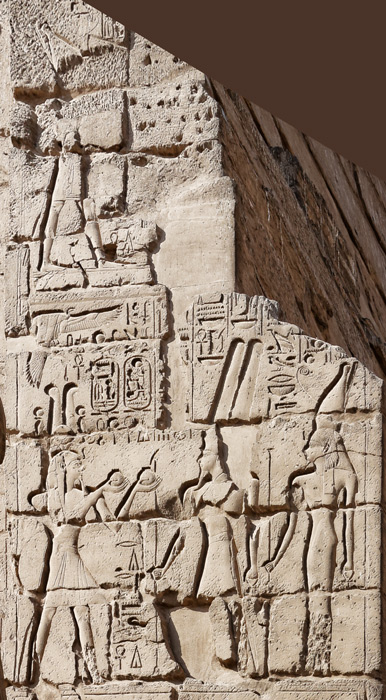 Dans les 2 scènes, Ramsès II encense Amon-Rê représenté ithyphallique suivi d'Amonet.