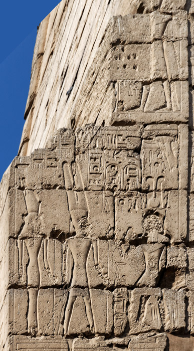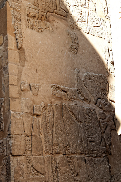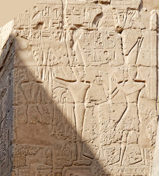 Les 2 scènes d'offrandes sont identiques : Ramsès II offre du vin à Amon-Rê suivi de Mout la grande. Amon donne au roi toute vie, stabilité et puissance sur la scène du montant Est à gauche.