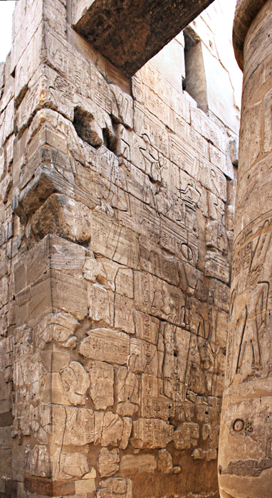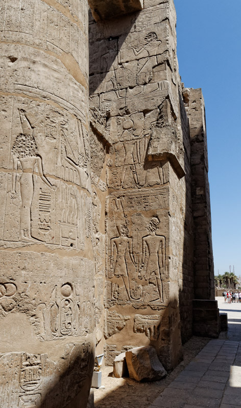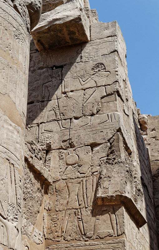 Au milieu des 3 scènes à l'angle du mur, le roi Ramsès II fait une offrande à Amon-Rê Kamoutef, les salades de Min représentées derrière lui.. En bas, il présente la Maât à Amon-Rê.
