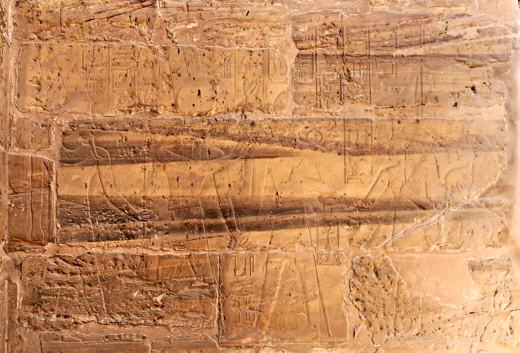 Le roi Amenhotep III est devant une table d'offrandes comportant des animaux sacrifiés, offrandes faites à Amon.