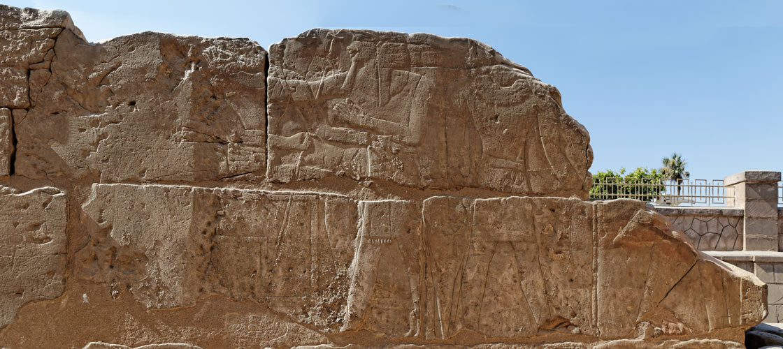 A droite, le roi est devant Amon. A gauche, il est devant des dieux assis. Il semblerait que la scène de gauche n'a pas été finie.