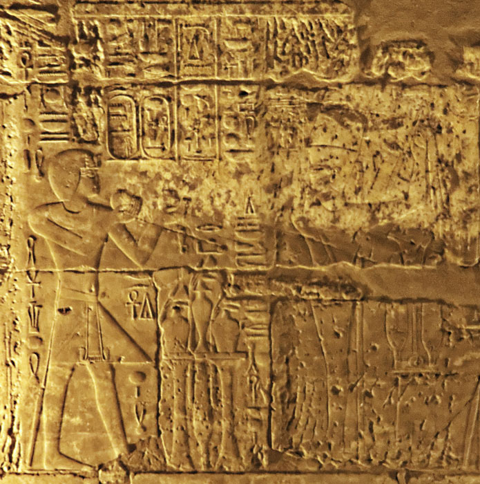 Le roi se tient debout devant Amon ithyphallique ou Amenope.