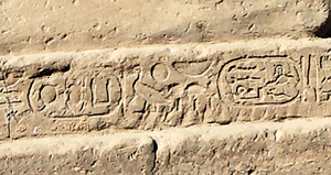 Ci-dessus, extraite du socle de l'un des sphinx, on peut lire la titulature de Nectanébo :