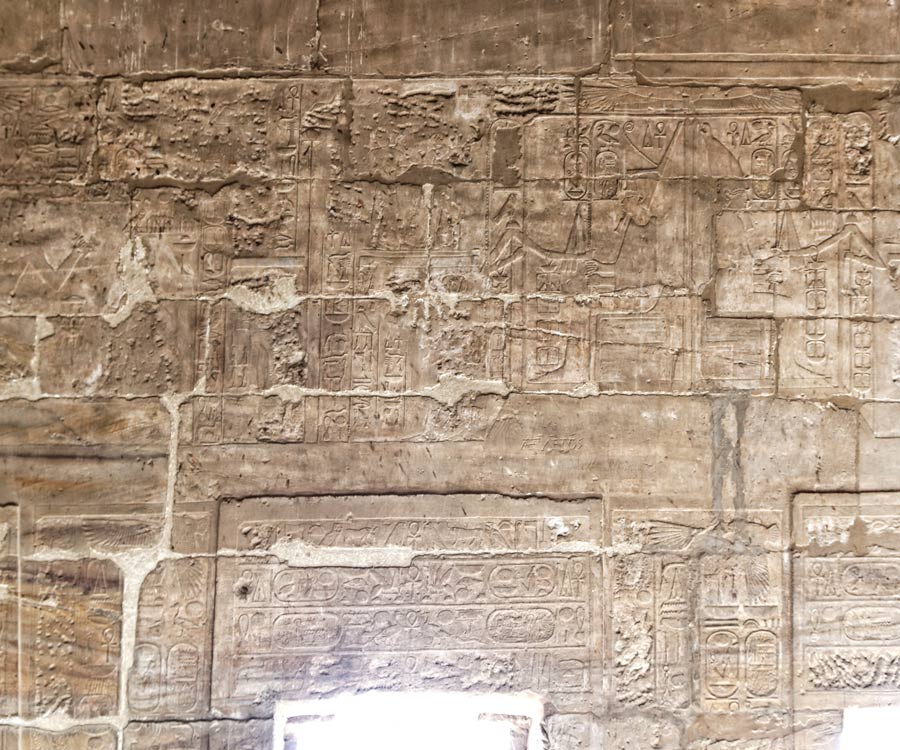La paroi Est comporte un bandeau de scènes en haut et plusieurs ouvertures vers l'extérieur de la salle. Ces portes donnaient vers des salles servant à entreposer différentes choses. Entre les portes, des scènes montrent le roi avec Amon.
