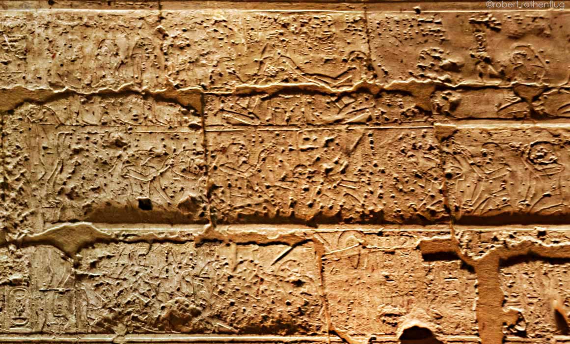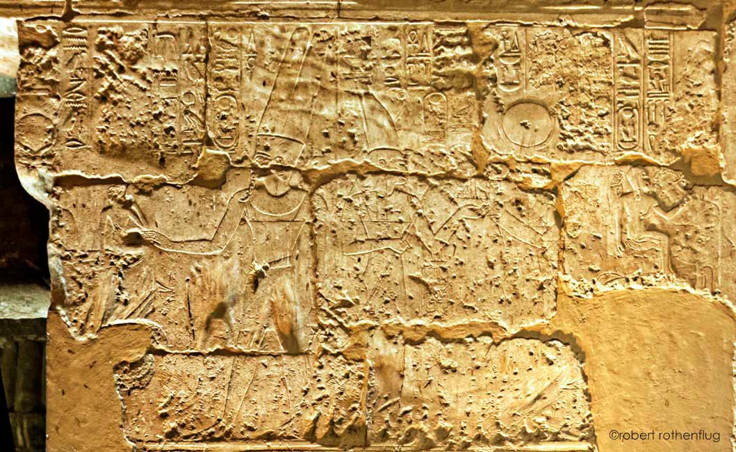 Dans le registre du bas, à gauche, les Baou de Pe et de Nekhen lévent le poing en signe d'adoration.