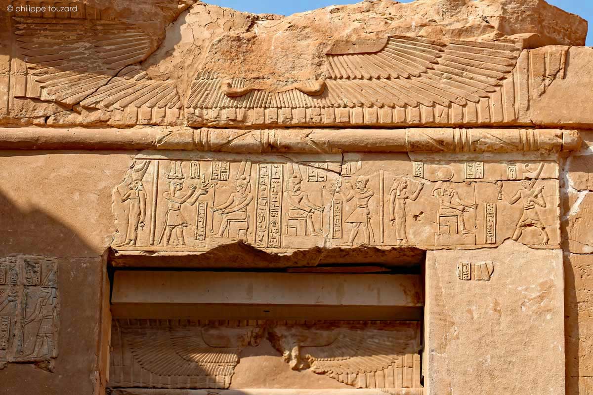 [Description][La porte du vestibule : le linteau][Scènes des montants]