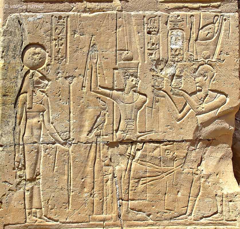 L'empereur offre les deux yeux Oudjat, aux divinités Min-Rê , Horus enfant et