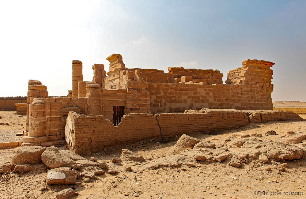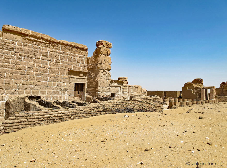 Ce plan est affiché à l'entrée avec un texte d''explication. Les colonnes en briques dans l'enceinte permettaient la tenue de plusieurs toits. Devant le temple, au bout de l'allée (8), sont placés un autel et un socle de statue. Le temple proprement dit est constitué de plusieurs parties. Tout d'abord, un porche ou petit kiosque (1) comporte deux murs bahuts et deux colonnes qui supportaient un toit. Sa paroi Ouest constitue la façade de la salle suivante et est complètement décorée ainsi que la porte. La salle 2 comporte 4 colonnes qui soutenaient un toit. Le vestibule (3) donne accès au sanctuaire (4) flanqué de deux petites salles. Les vestiges du plafond astronomique du sanctuaire, sont sauvegardés dans une petite construction au Sud du temple.
