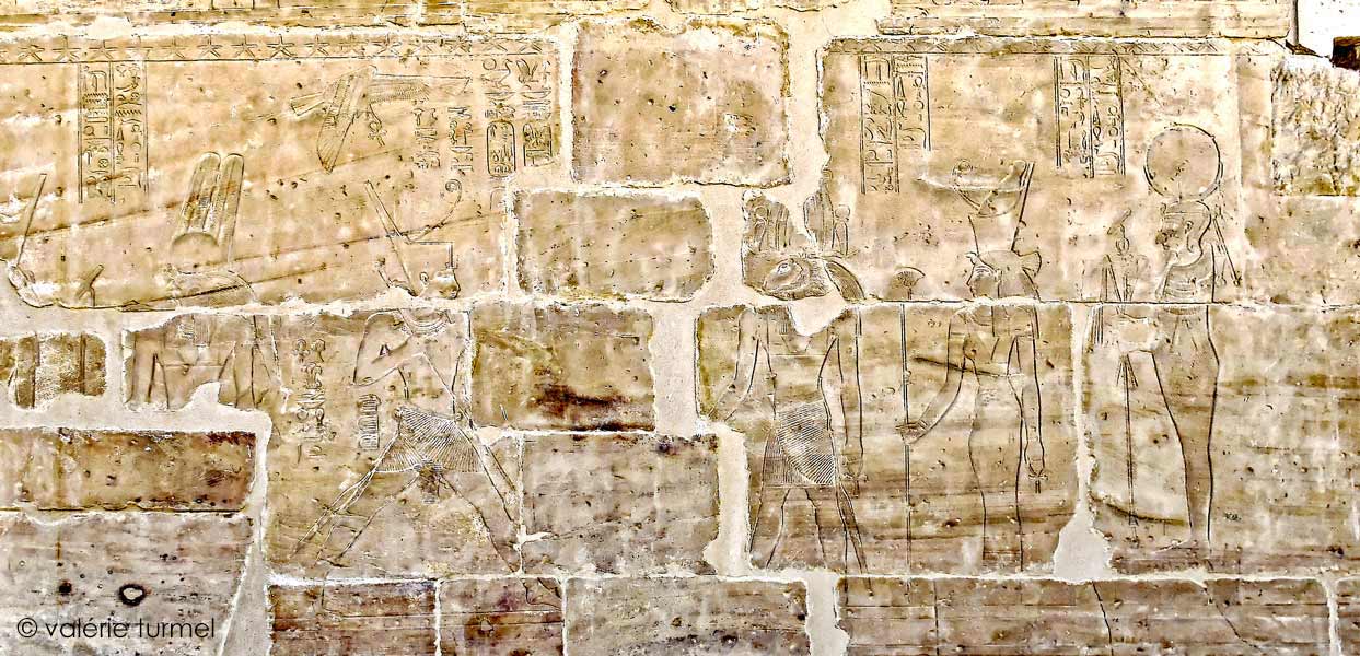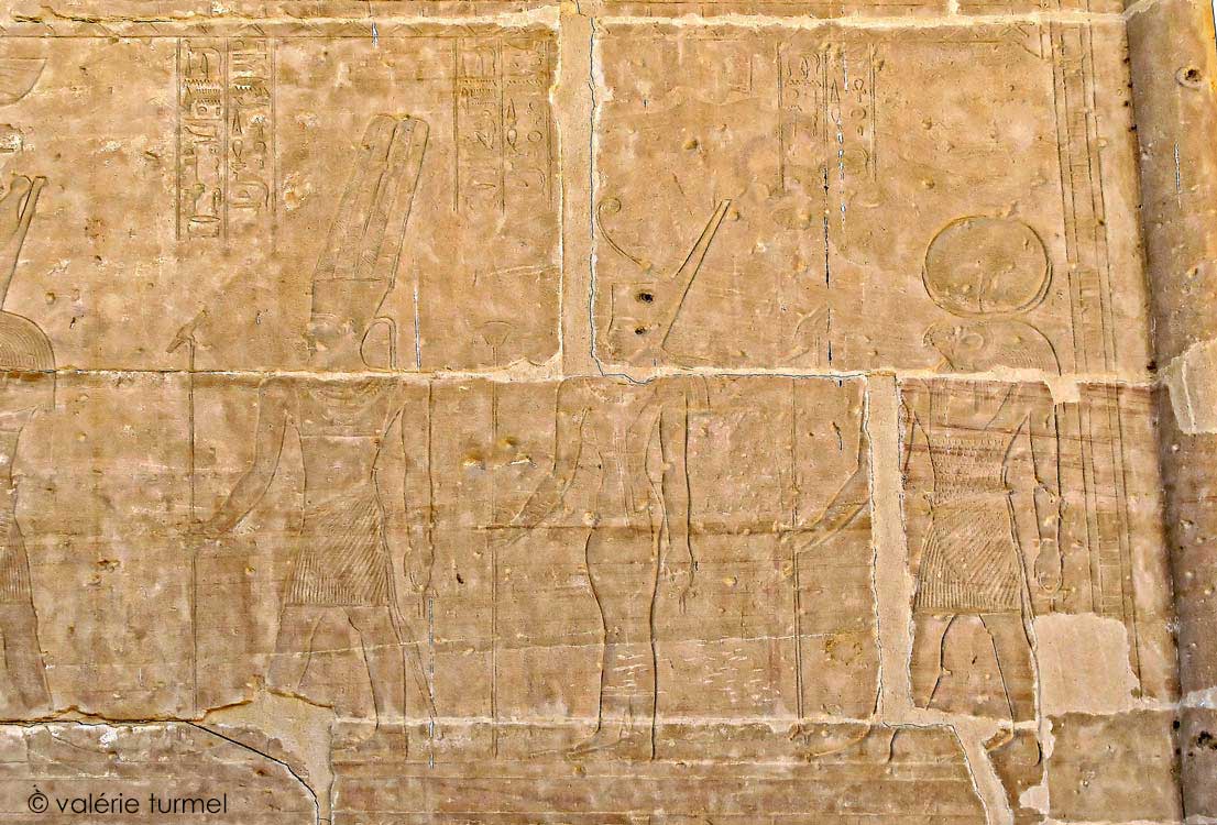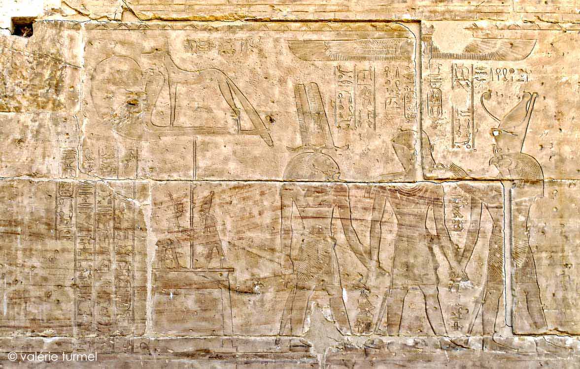 Darius est amené vers le sanctuaire par Knoum et Horus, le vengeur de son père qui lui donne la vie. (Davies, p.28 et 29, planche n°47)