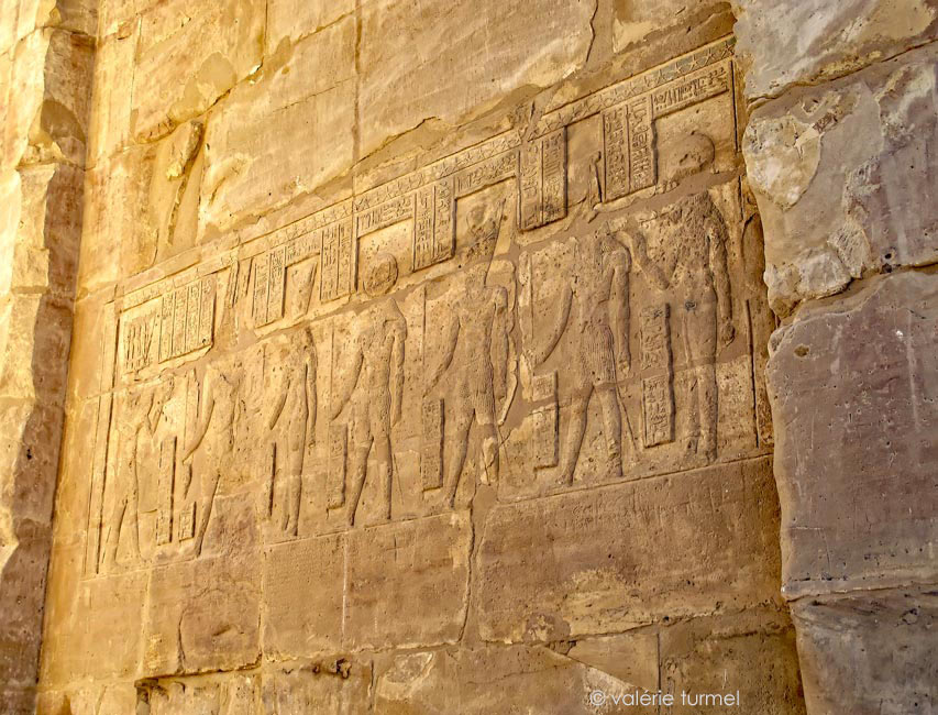 roi est celui qui satisfait le cœur des dieux et des déesses, le maître des Deux terres. En retour de l'offrande, Amon assure que le roi est établi sur le trône et recevra des millions de fêtes-Sed sur le trône d'Horus.