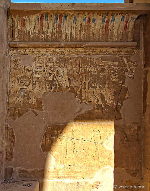 Le roi Nectanebo II offre 2 laitues à Amon-Rê représenté comme Min accompagné d'Isis. La chapelle de Min est dessinée derrière Amon qui donne au roi la puissance. Isis donne un mélange des dons détaillés dans la scène voisine. (Davies, part III, planche 63 et texte p.32)
