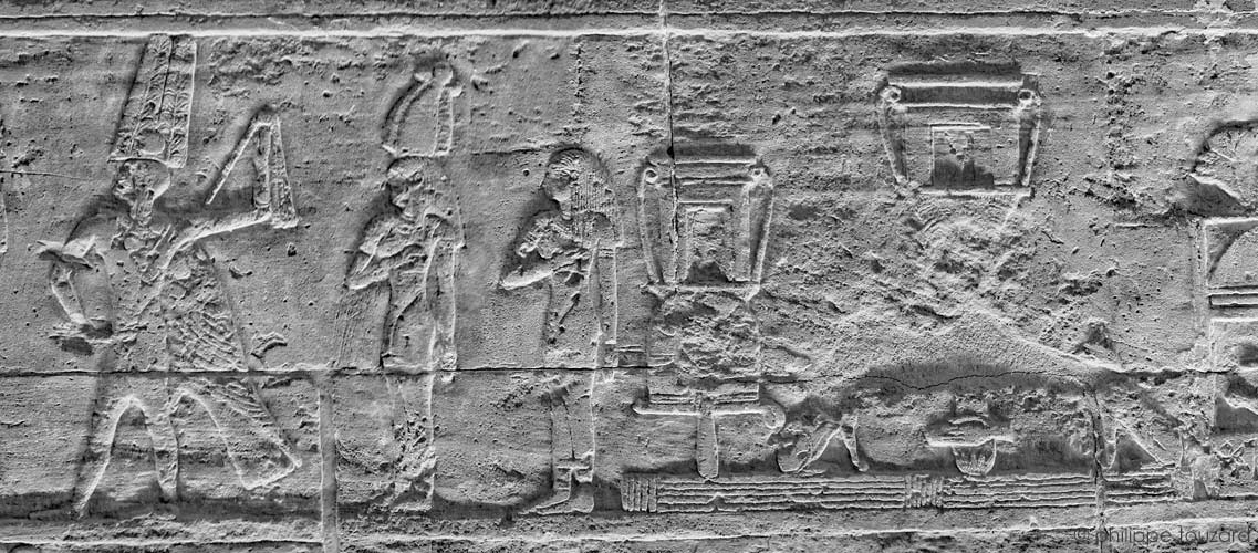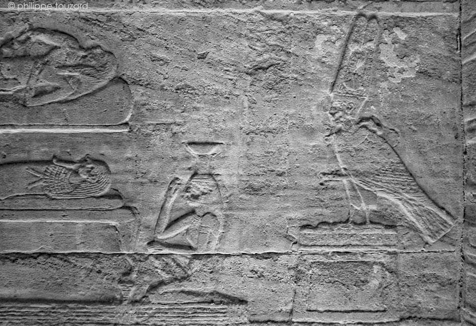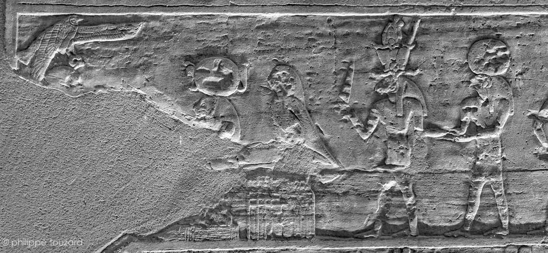 n°5.Un dieu à tête de faucon avec le même type de disque se tient en position d'offrandes.