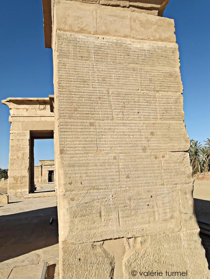 Gnæus Vergilius Capito fut préfet d'Égypte de l'an 47 à l'an 52 de notre ère. En l'an 49 il publia un décret qui fut to fut gravé sur le montant Sud de la porte extérieure. Les colonnes I à III sont gravées sur des blocs de la face Est, alors que la colonne IV est gravée à la suite sur la face Nord. (part II, p.4 pour la position du texte)