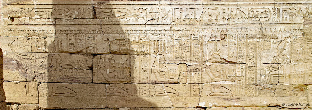 Les 2 dieux Hapy et les 2 déesses Campagne précédent Domitien qui consacre les présents.