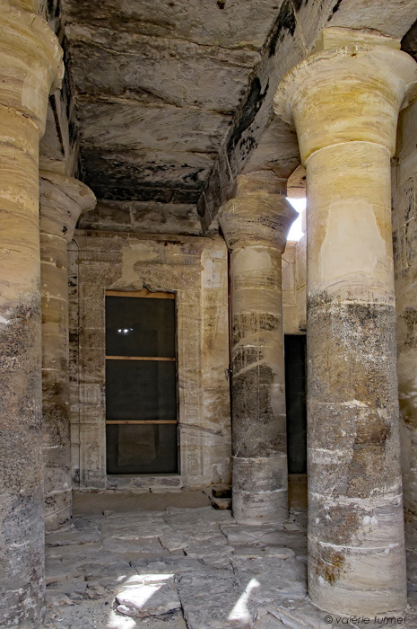 Le naos est constitué d'une salle hypostyle et d'un sanctuaire en enfilade.