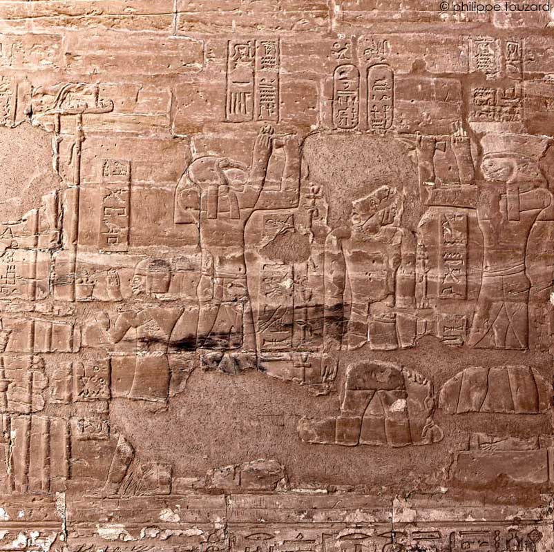 En dessous, une série de cartouches , sans doute de Ptolémée III.