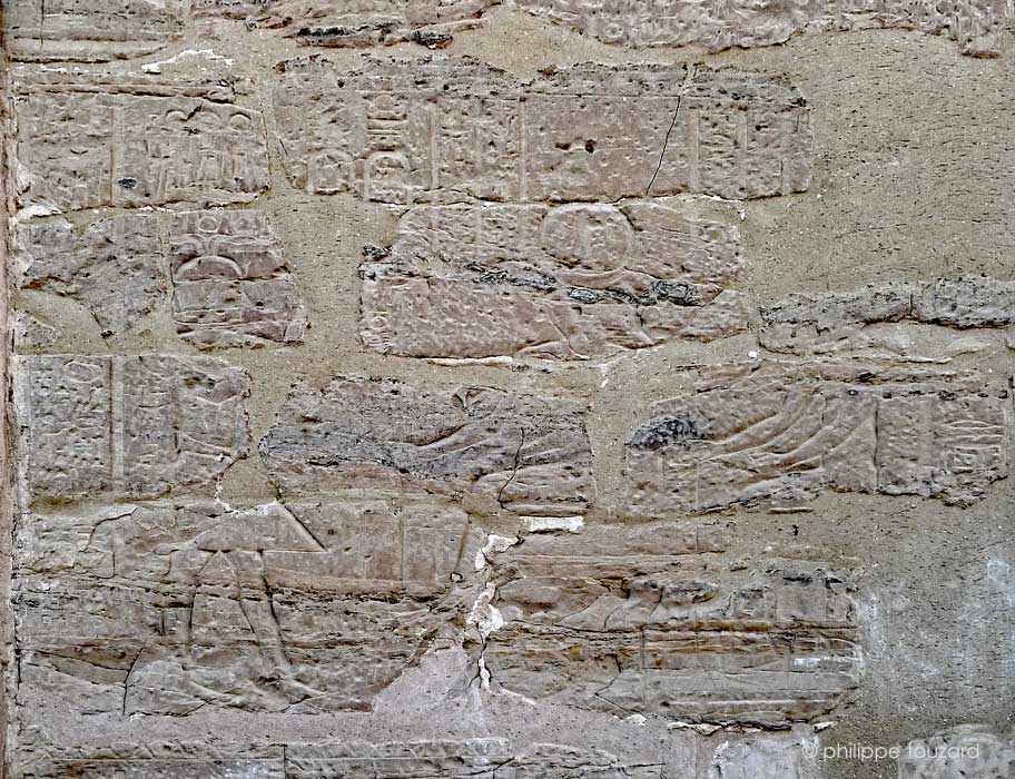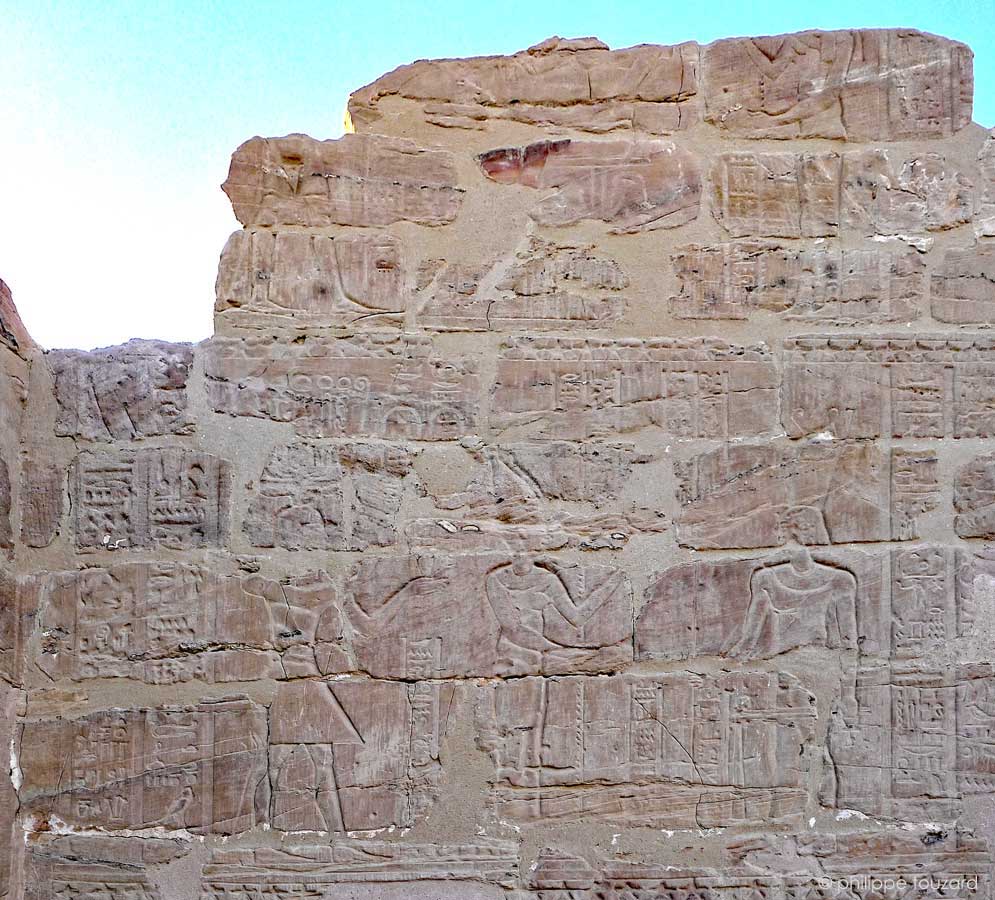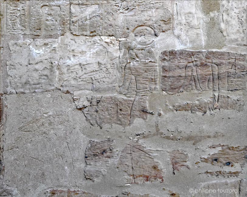 - en haut, un reste de scène montre le roi devant deux divinités.