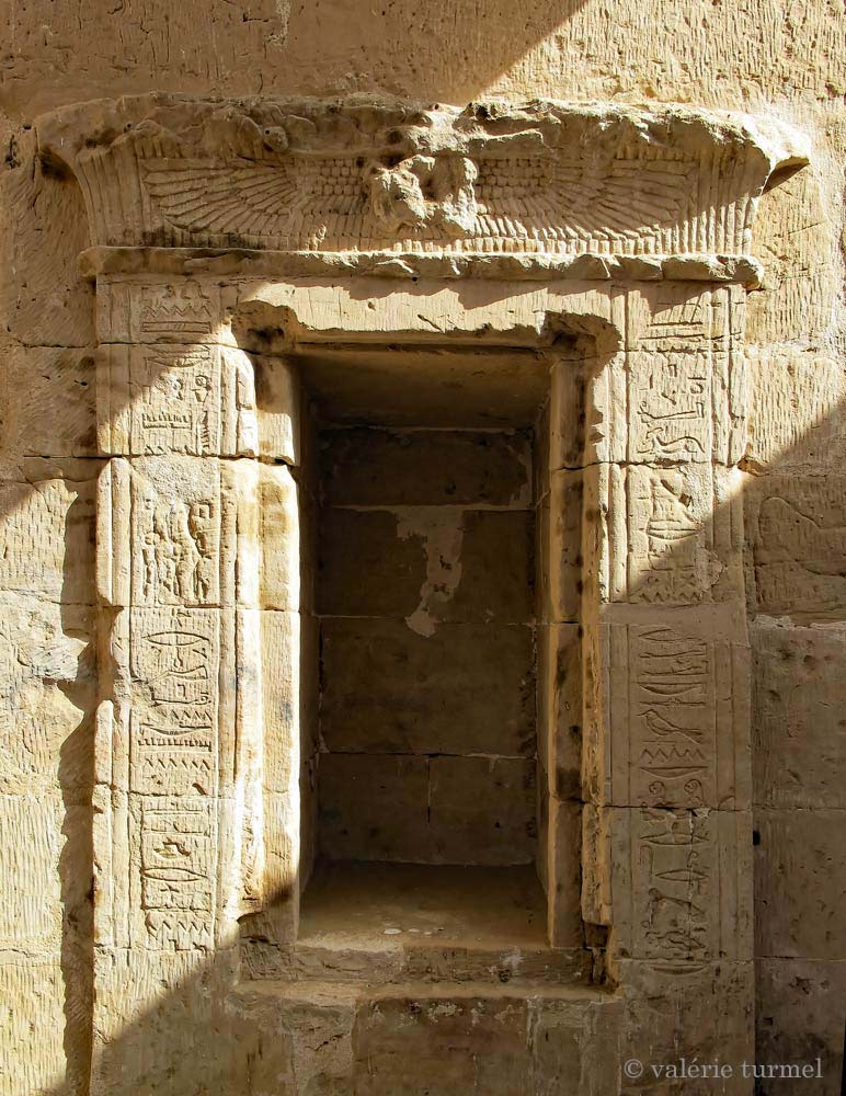 Cette niche constituait le naos du sanctuaire. Elle comporte une corniche avec un double disque ailé. Sur les montants est inscrit un discours adressé par le roi à Amon d'Hibis et commençant par : "Je viens à toi,ô mon père Amenhibis.." (Sauneron, p.29=.