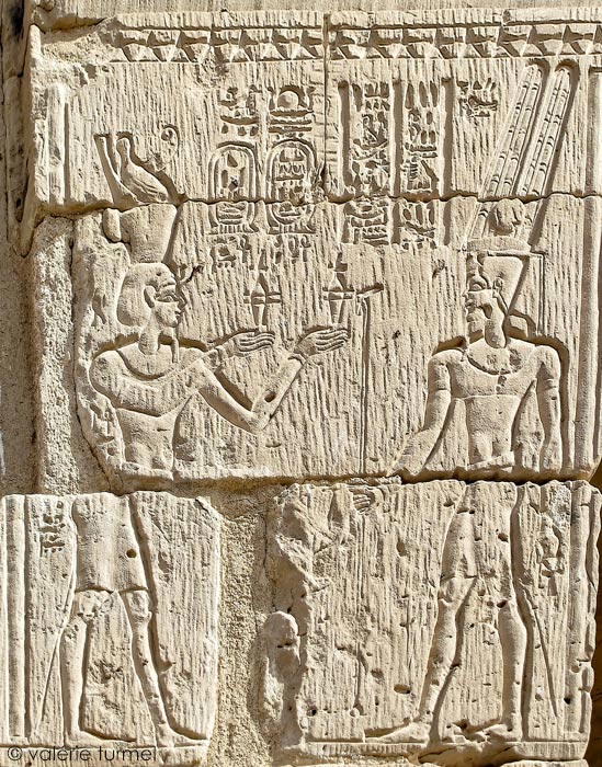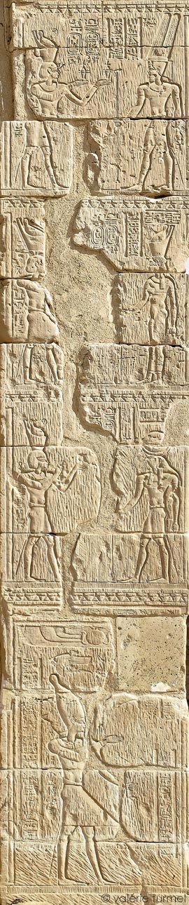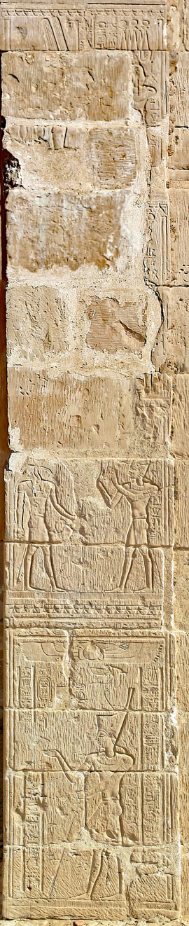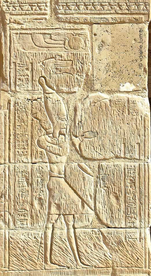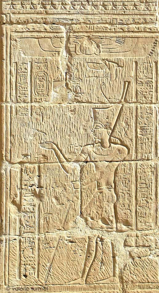 À gauche, il porte la couronne blanche de Haute-Égypte.