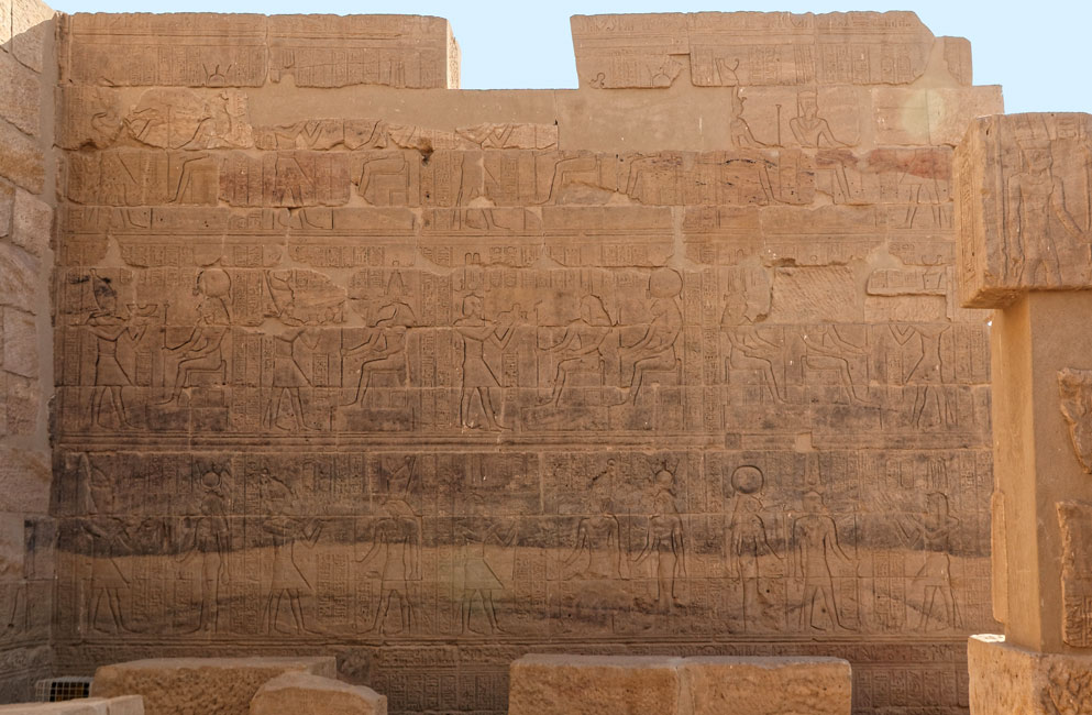 [Registre du haut côté Nord][Registre du milieu côté Nord][Registre du bas côté Nord][Scènes du côté Sud][Scènes de la base]