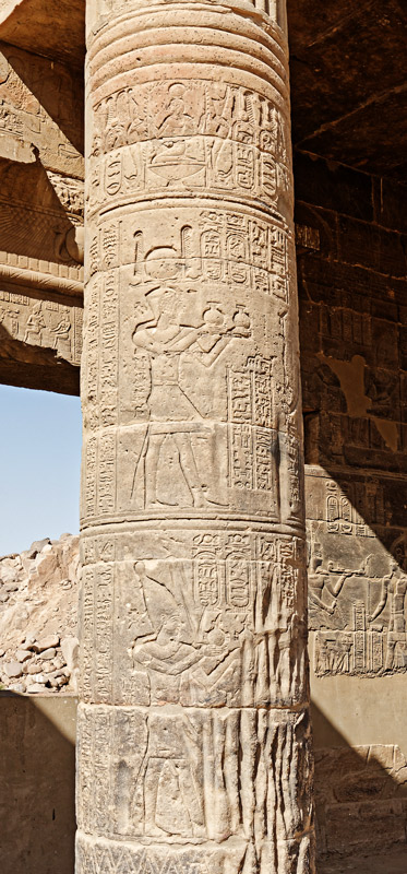 Sur cette colonne en face de la porte (voir plus loin), deux scènes : en haut, offrande du vin et en bas offrande du lait.
