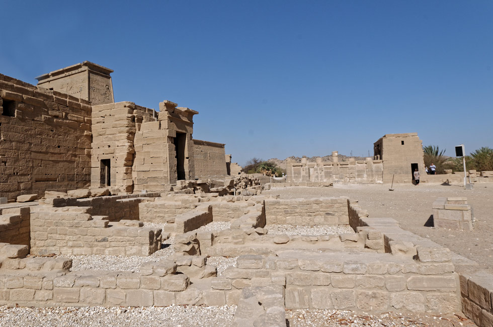 A gauche, le temple d'Isis avec l'entrée du passage de Tibère et dans le fond à droite, le temple d'Hathor. A l'avant plan, se trouve une chapelle inachevée, sans inscription, bien mystérieuse.
