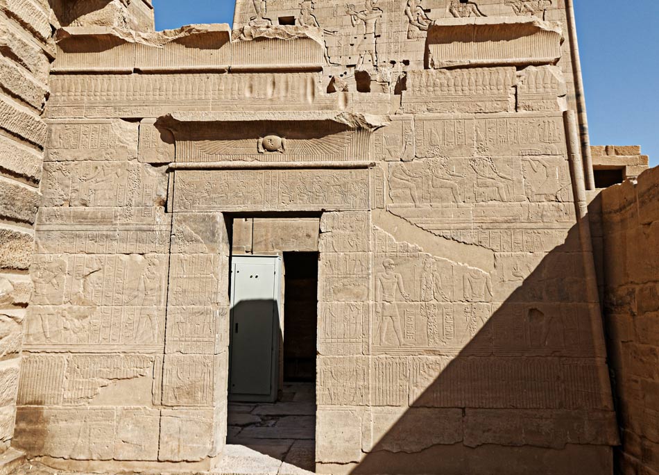 Sur un des montants de l'entrée vers son temple dans la colonnade Est, Imhotep invite le visiteur à entrer.