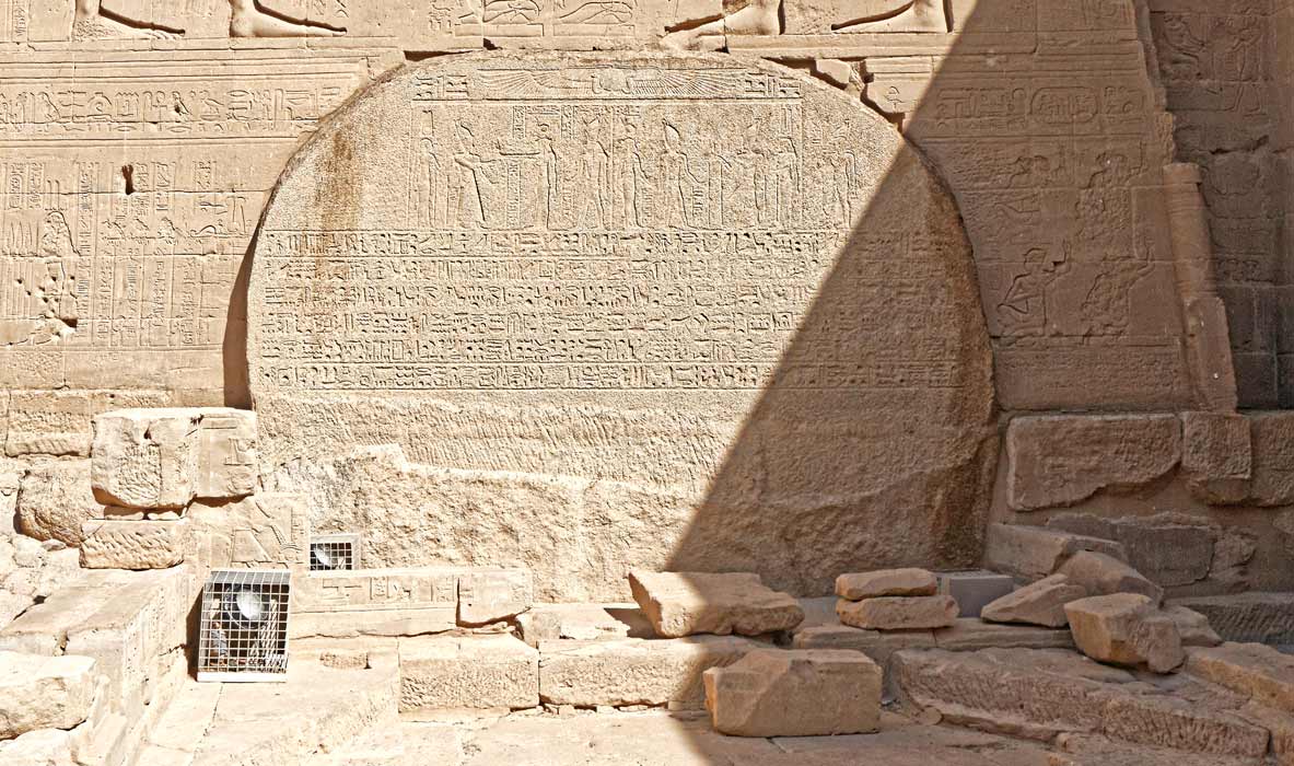 Lea stèle du Dodécaschène se trouve devant le môle Est du 2ème pylône. Le dodécaschène ou région des douze scènes (soit environ 12 km) part d'Assouan vers le sud. Cette région est très riche en gisements d'or. La possession de cette région fut accordée à Philae à une date assez ancienne. Cette donation est reproduite en forme d'édit sous le nom de Ptolémée VI Philométor. Le texte est écrit en hiéroglyphes