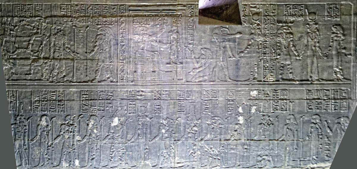 Les scène de cette salle montrent le déroulement de la théogamie, à la différence importante qu'Isis remplace la mère du roi intervenant dans les précédentes théogamies. La scène de la rencontre avec Amon est placée ici en haut à gauche, alors que pour Hatchepsout et Amenhotep III, elle occupe une place plus centrale.