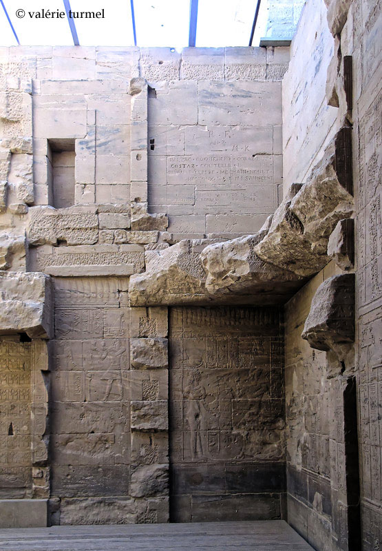 Sur la partie supérieure, une inscription rappelle le passage des savants associés à la campagne de Bonaparte.