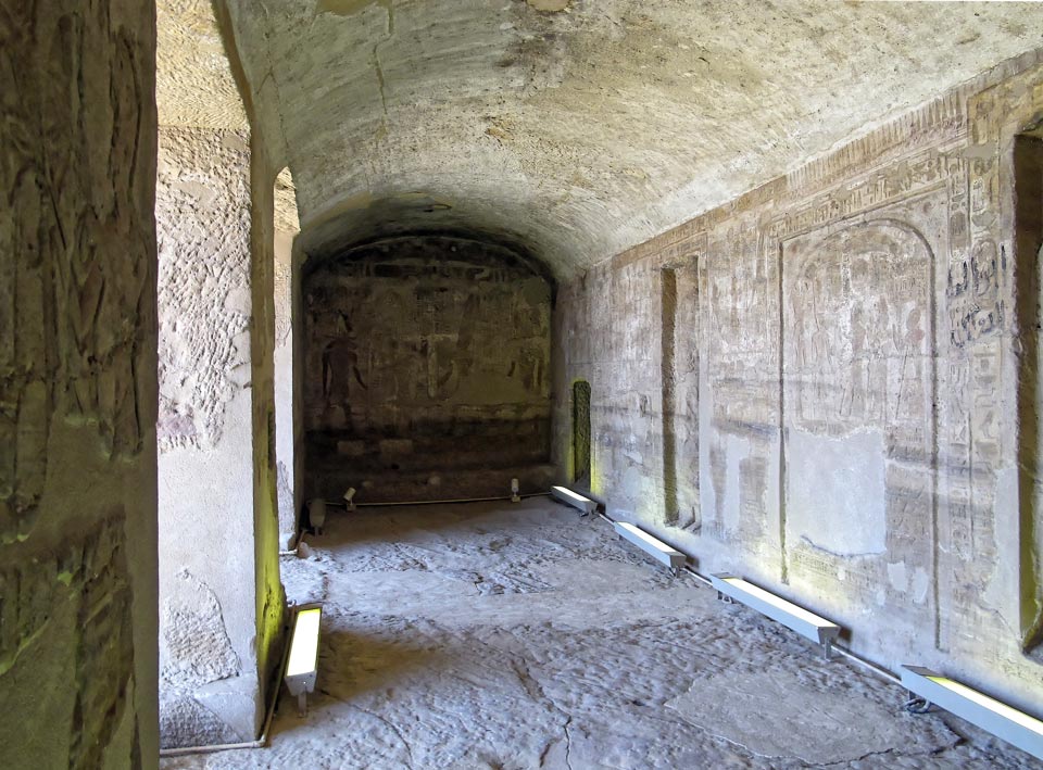 Au fond de cette partie de la galerie, se trouvent plusieurs scènes représentant Horemheb dont celle de son triomphe. Une chapelle construite par Pahénésy occupe la partie Sud-Est. L'ensemble des scènes de la galerie est accessible grace au plan de la page suivante (cf. ci-dessous).