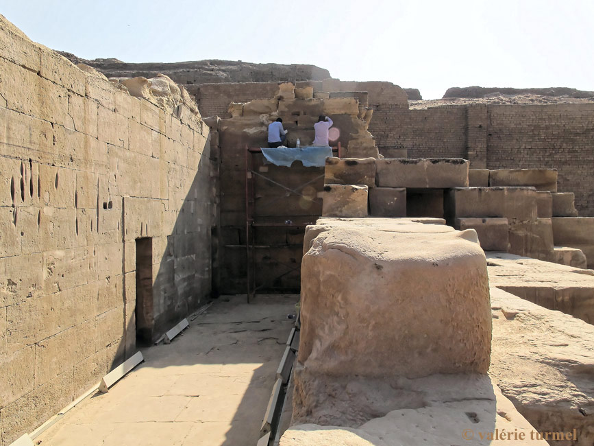 à gauche le couloir des chapelles de Ptolémée XII Neos Dionysos.