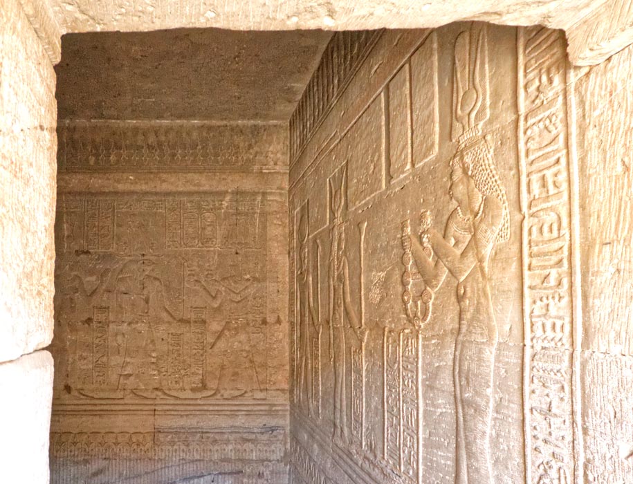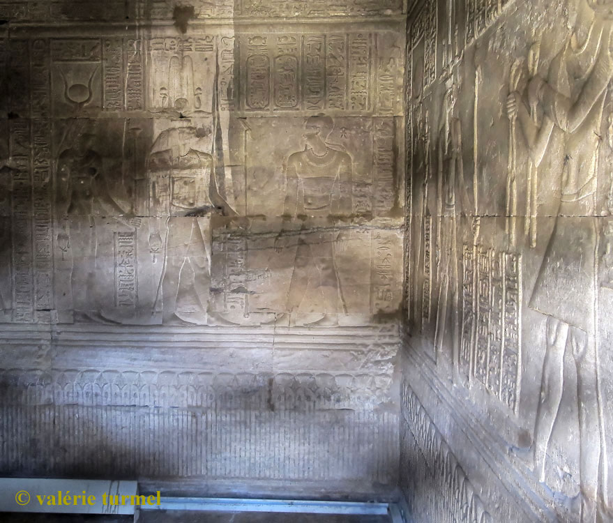 A droite, Cléopatre Vi fait l'offrande d'un collier à 2 divinités. les textes n'y sont pas gravés.
