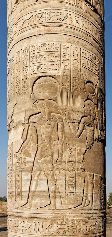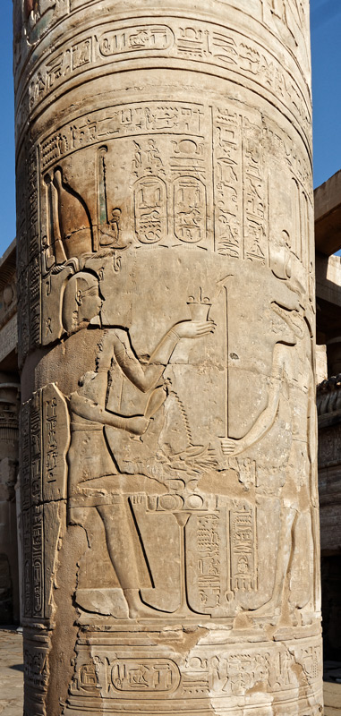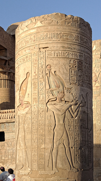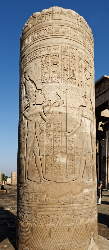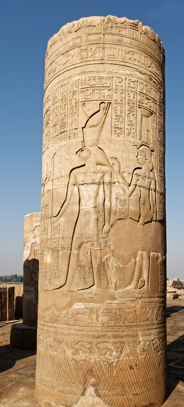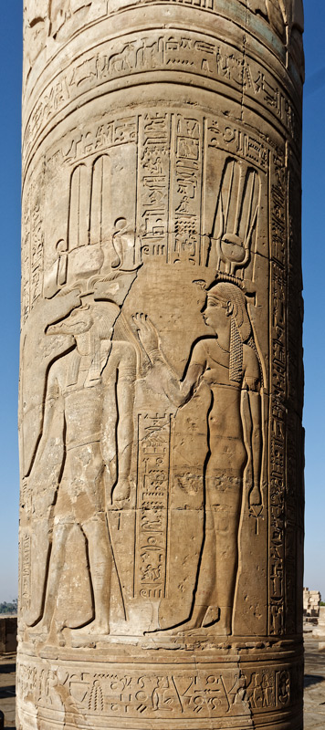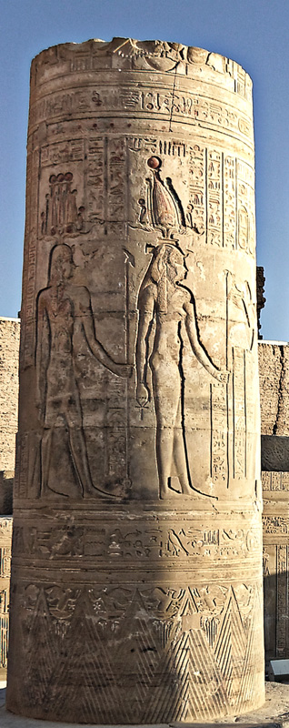 Sur la colonne de gauche, offrande à Hathor et Khonsou