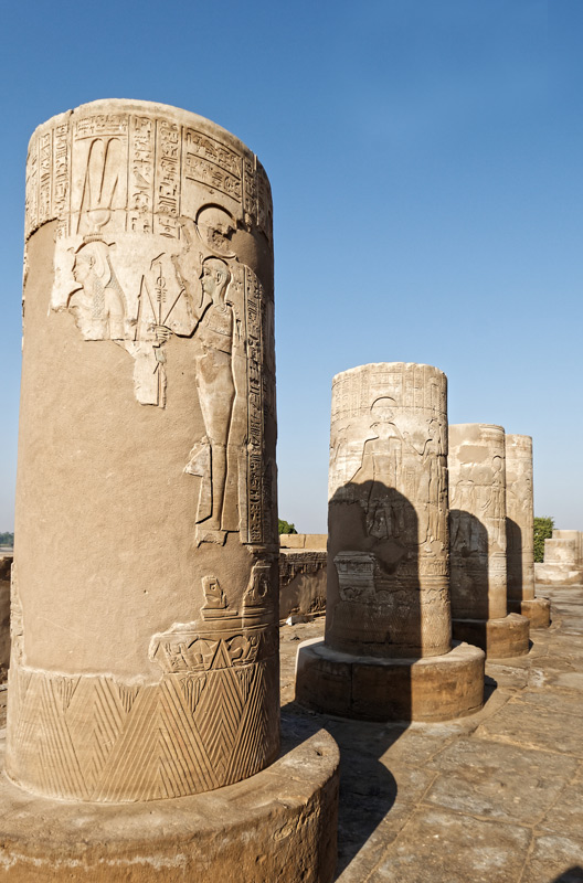 L'empereur Tibère encense Sobek accompagné d'Hathor et leur verse une libation, rites de purification.