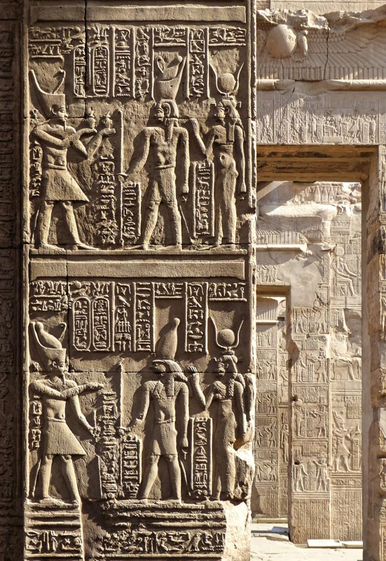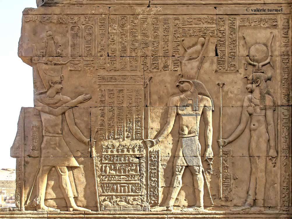 En bas, le roi Ptolémée .VI Philométor devant Haroéris suivi de Tasenetnefret