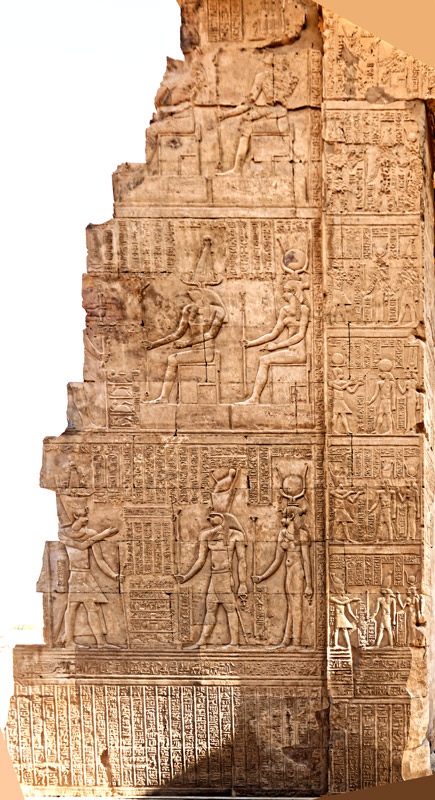 La construction des salles du temple à partir de ces parois a été effectuée par Ptolémée VI Philometor.