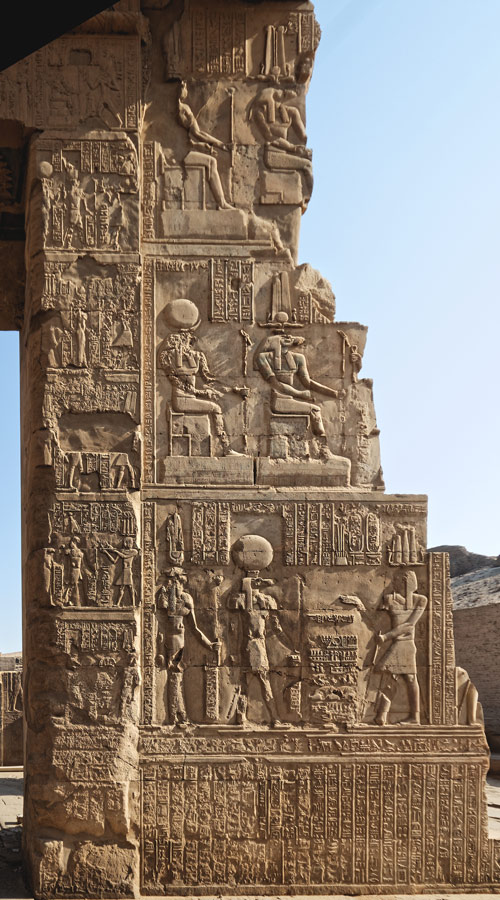 Le jambage de la porte Sud (à droite) comporte 5 scènes plus ou moins dégradées :
