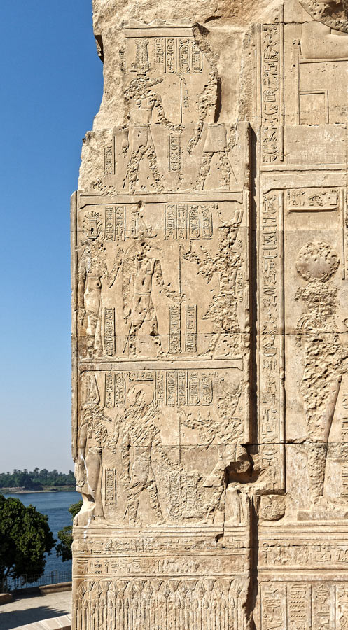 En haut, le roi est devant Sobek et une déesse (détruite).